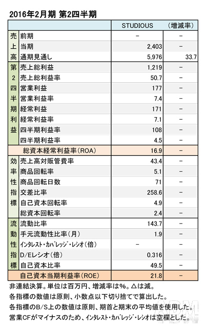 STUDIOUS の可能性──2016年2月期 第2四半期