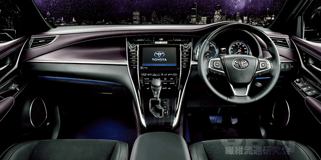素材はアルカンターラ社のものを採用した。先だって、東京・六本木ヒルズで開催したエンドユーザー展示会では好評を集めたという。「HARRIER」のターゲット層は、30-40代の男性で、人と違うことに興味を抱く、個性的で情報感度の高いユーザー。トヨタ自動車では、輸入車に対抗できる車に位置付けている。大阪では、梅田の「グランフロント大阪」を会場に、同様のターゲットユーザーへ向けてアピールした。