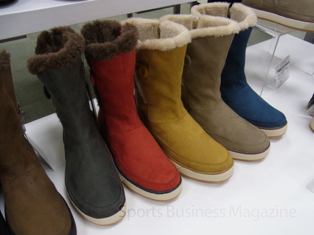 フットウエアは主力のモデル――ウインター対前年比148%、ウォーキング同112%、テニス同150%――がそれぞれ健闘した。ウインター(売上比率45%)とウォーキング(同40%)で全体の95%を占める。この2つのラインは競技系ではなく、普段履きの機能性シューズのカテゴリーに属する。スポーツチャネルでも販売するが、特に11年秋冬は靴専門店や通販、百貨店の売り上げが伸びた。機能性とデザイン性のバランスが支持を集めたようだ。