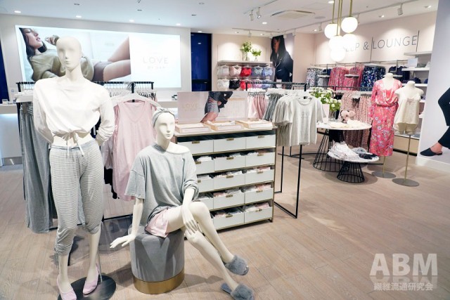 「LOVE BY GAP」はレディスのインナーウエア、ルームウエアで構成する。リラックスできるデザインや機能性のウエアを集積した。本国・米国と連動した取り組みで、日本市場では今春、20店程度をめどに同様のコーナー展開を立ち上げる計画だ。フラッグシップ、三宮店において先行スタートする。