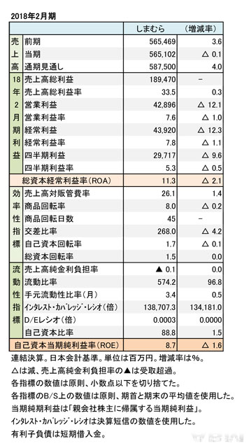 しまむらの2018年2月期連結決算は、国内事業が伸び悩んだこともあり、微減収・減益となった。主力業態の「しまむら」が1.3%減と減収に至った。海外の上海、台湾事業は増収したが、黒字化には至っていない。