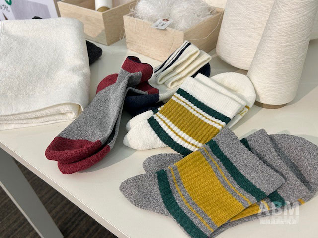 新しい提案では、和紙を糸に寄り込んだ和紙糸「WASHI」を開発した。ITOI生活文化研究所の特許装置で製造された「DIRECT WASHI®」を使用した素材だ。シャリ感のある風合いで、靴下やタオルなどに適した素材 感である。