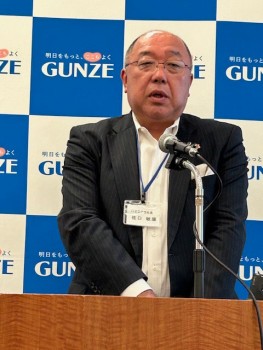 グンゼが7月9日、大阪市内で「2024年度 事業説明会」を開催した。今年度(2025年3月期)の重点政策について、各担当の役員がメディアに説明した。アパレルカンパニーでは、アパレルの総合ブランド化を進め、新規顧客の開拓に力を入れる。