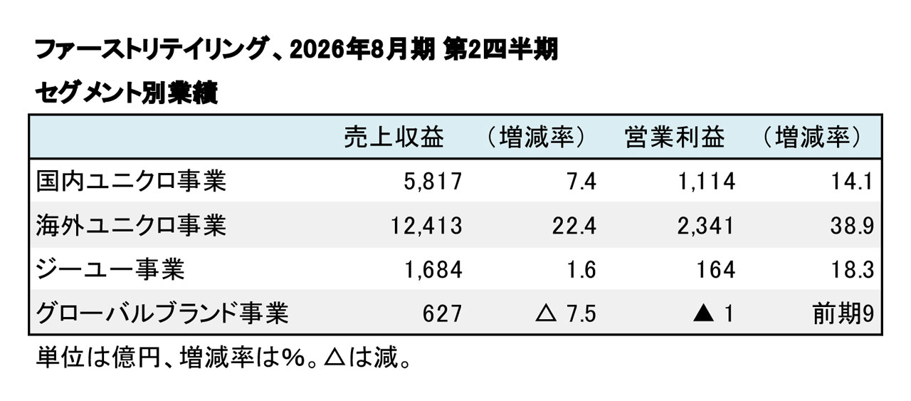 ファーストリテイリング、2026年8月期 第2四半期 連結決算──2ケタの増収増益を達成