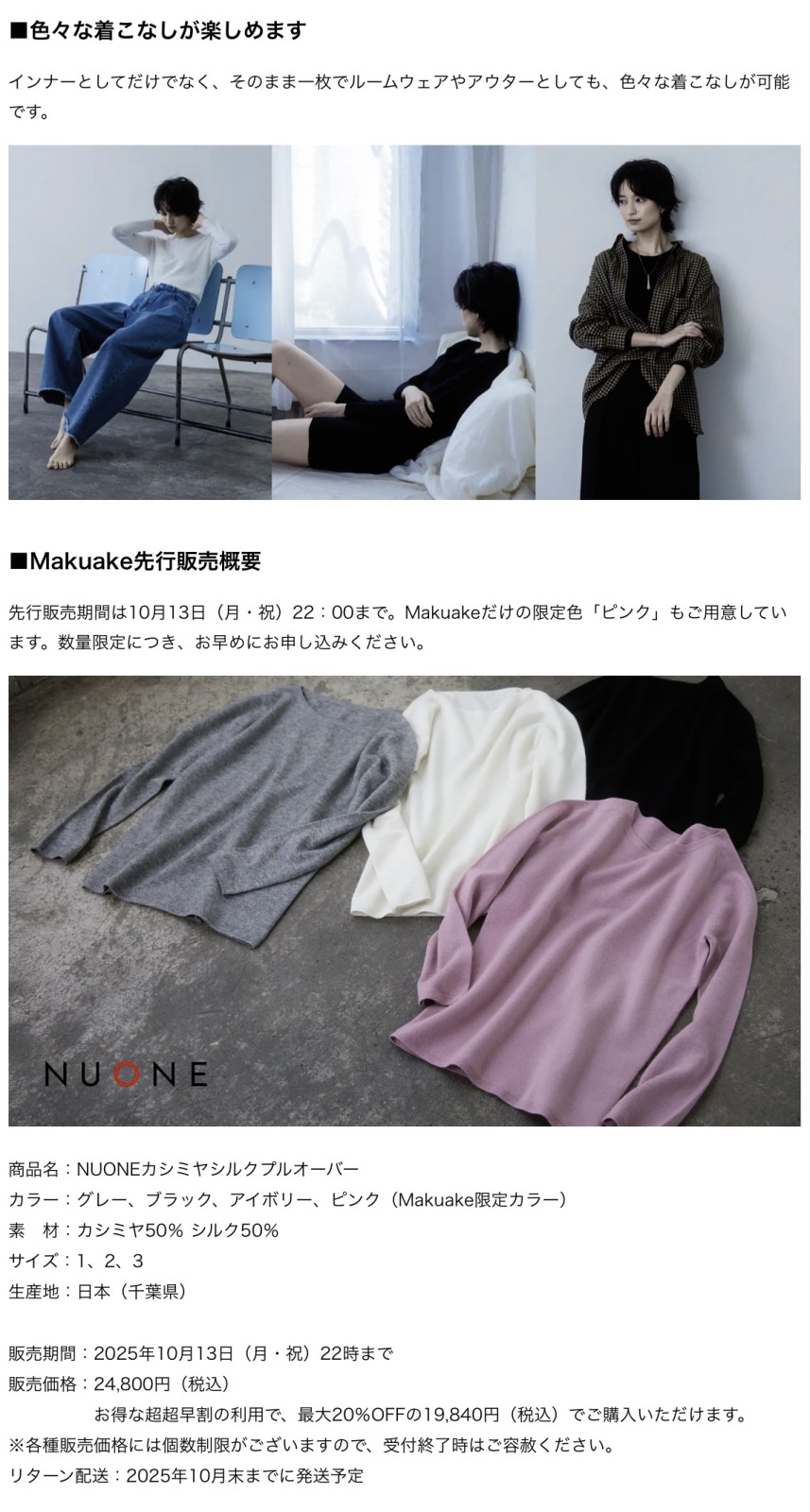 【目標718%達成】幻のニット「NUONE(ヌワン)」が復活。Makuakeでの先行販売は10月13日まで!