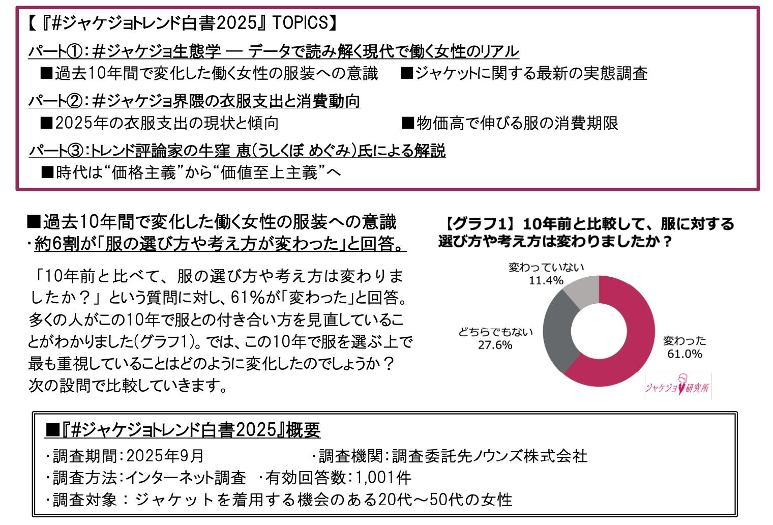 この度、“働く女性の服装”から時代の変化と動向を読み解く『#ジャケジョトレンド白書2025』を発表します。