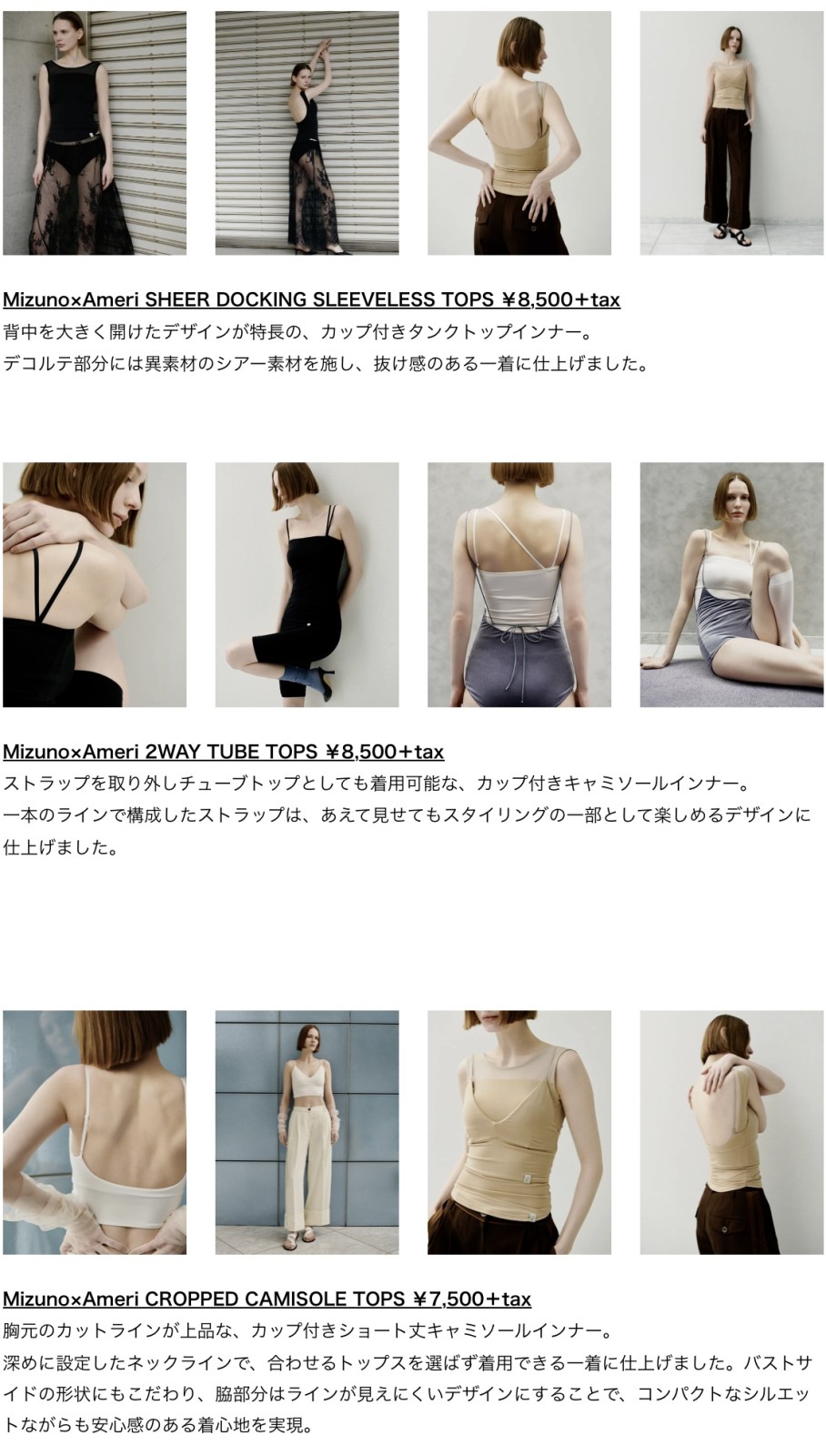 総合スポーツ用品メーカーMizuno(ミズノ)と、ファッションブランドAmeri(アメリ)のコラボレーション涼感素材『アイスタッチ』を使用した“魅せる機能性インナー”を展開
