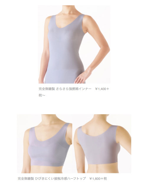 今季は「完全無縫製 さらさら強撚綿インナー」と「完全無縫製 ひびきにくい接触冷感ハーフトップ」「完全無縫製 ひびきにくい接触冷感ショーツ」などの春夏アイテムをラインアップに追加し、 <汗ばむ季節も、 もっと、 肌休みしよう。 >をコンセプトに、 快適なライフスタイルを提案します。