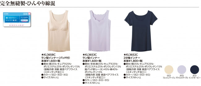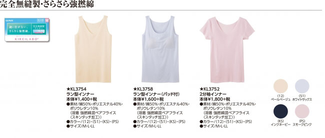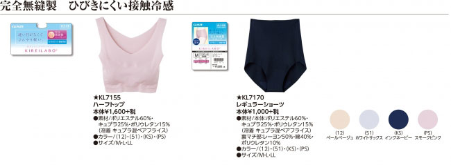 グンゼ株式会社(本社:大阪市北区、 社長:児玉 和)は、 2017年4月上旬より『KIREILABO(キレイラボ)』から「完全無縫製 さらさら強撚綿インナー」と「完全無縫製 ひびきにくい接触冷感ハーフトップ」を新発売いたします。