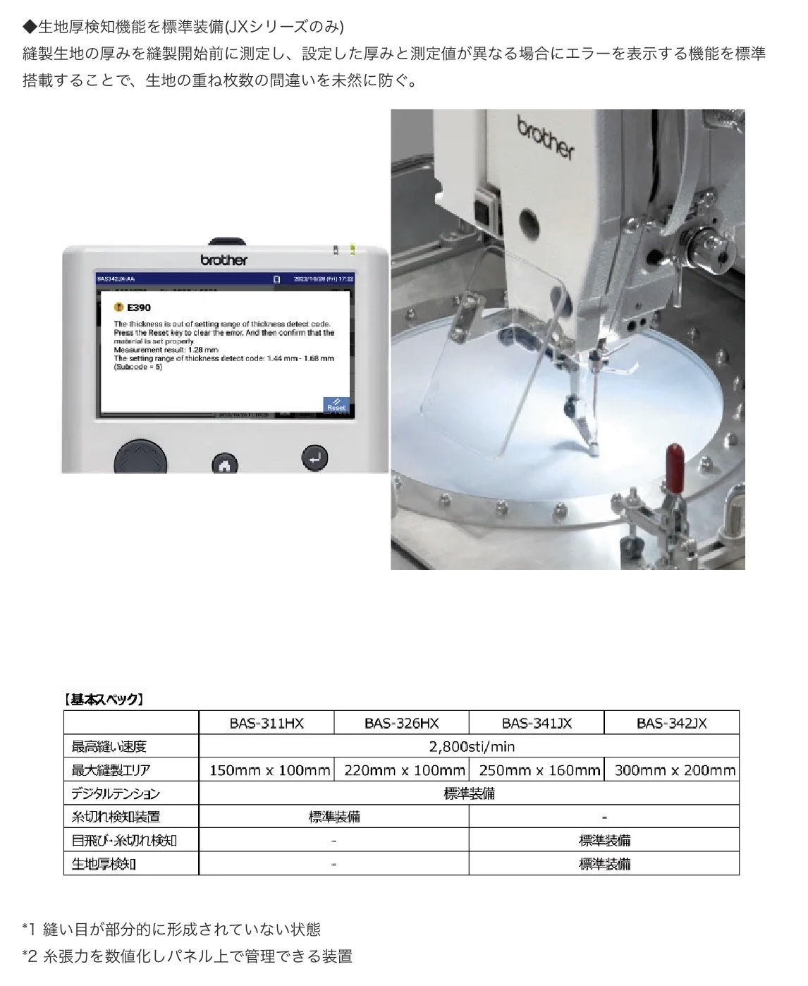 ブラザー工業株式会社(社長:佐々木一郎)は、高速縫製と高い縫製品質を実現した「ダイレクトドライブプログラム式電子ミシン NEXIO BAS-311HX/BAS-326HX (HXシリーズ)」と、ブラザー独自の目飛び*1・糸切れ検知機能を搭載した「ダイレクトドライブプログラム式電子ミシン NEXIO BAS-341JX/BAS-342JX (JXシリーズ)」を3月7日に発売する。