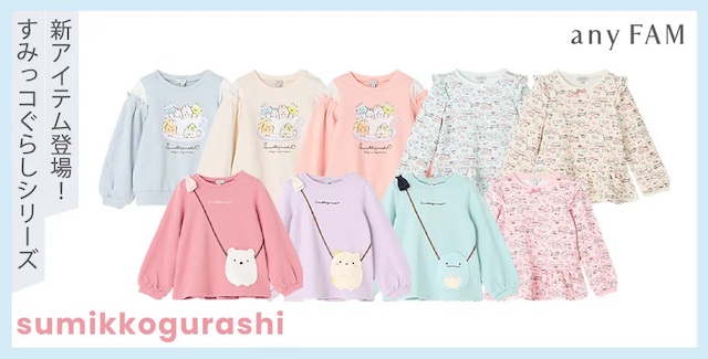 株式会社オンワード樫山(本社:東京都中央区 代表取締役社長:保元 道宣)が展開する 『any FAM(エニィ ファム)』(https://www.anyfam.jp/)は、第2弾となる『すみっコぐらし』 デザインの子供服を、10月2日(月)から順次発売します。