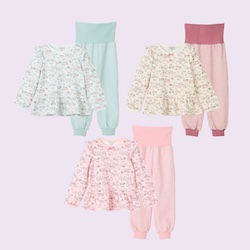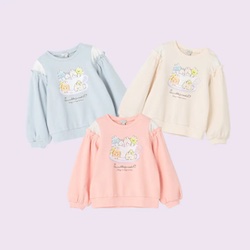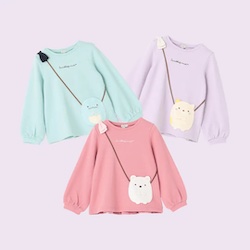 今回は、第2弾となる『すみっコぐらし』デザインの子供服を提案します。肩部分がレースになったレイヤード風デザインと、『すみっコぐらし』のキャラクターがポシェット風にデザインされた2種類のトレーナーを展開。さらに、総柄デザインとチェックのボトムスがセットになったルームウェアをオンラインサイト限定で展開します。ルームウェアのボトムスは、ハイウエスト仕様で冷えが気になるお腹周りまでしっかりと守ってくれます。