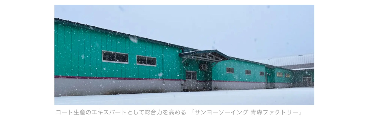 ➀【 生 産 】 コート専業54年の「サンヨーソーイング 青森ファクトリー」が職人技術と最新の設備投入により一貫して生産