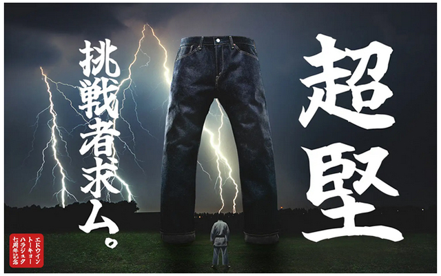 エドウイントーキョーハラジュクの7周年モデルとして22オンスの超ヘヴィーウエイトなセルビッジデニムを使用した「超堅(ちょうかた)ジーンズ」が登場。
