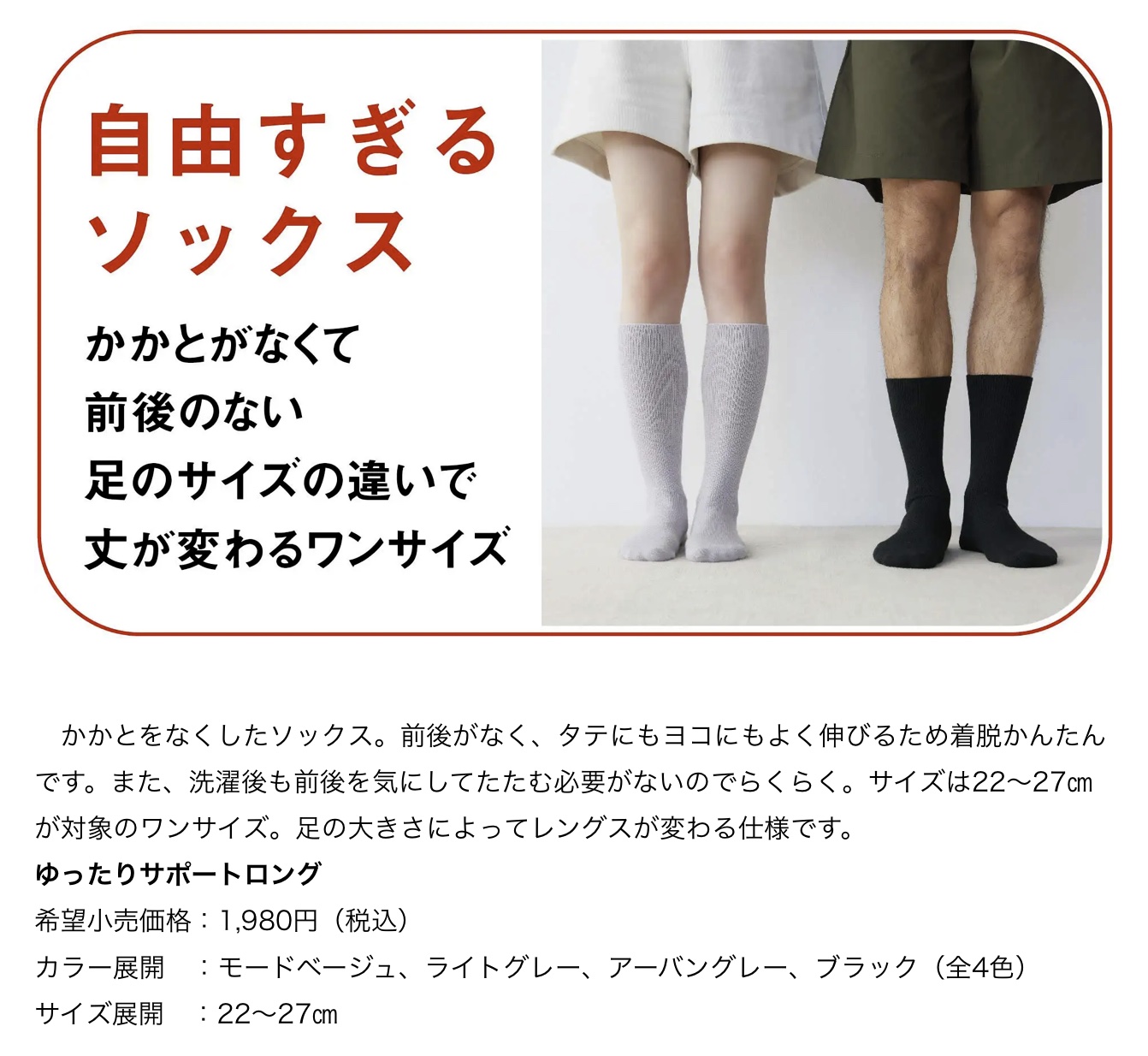 アツギ株式会社(本社:神奈川県海老名市、代表取締役社長:日光信二)は、新ブランド「みんなの、みんなの。」を発売いたします。「みんなの「楽ちん」は、みんなのハッピーなのだ。」を合言葉に、脱ぎ着がしやすく、肌に優しく、扱いやすいアイテムを幅広いサイズ展開でお届けします。