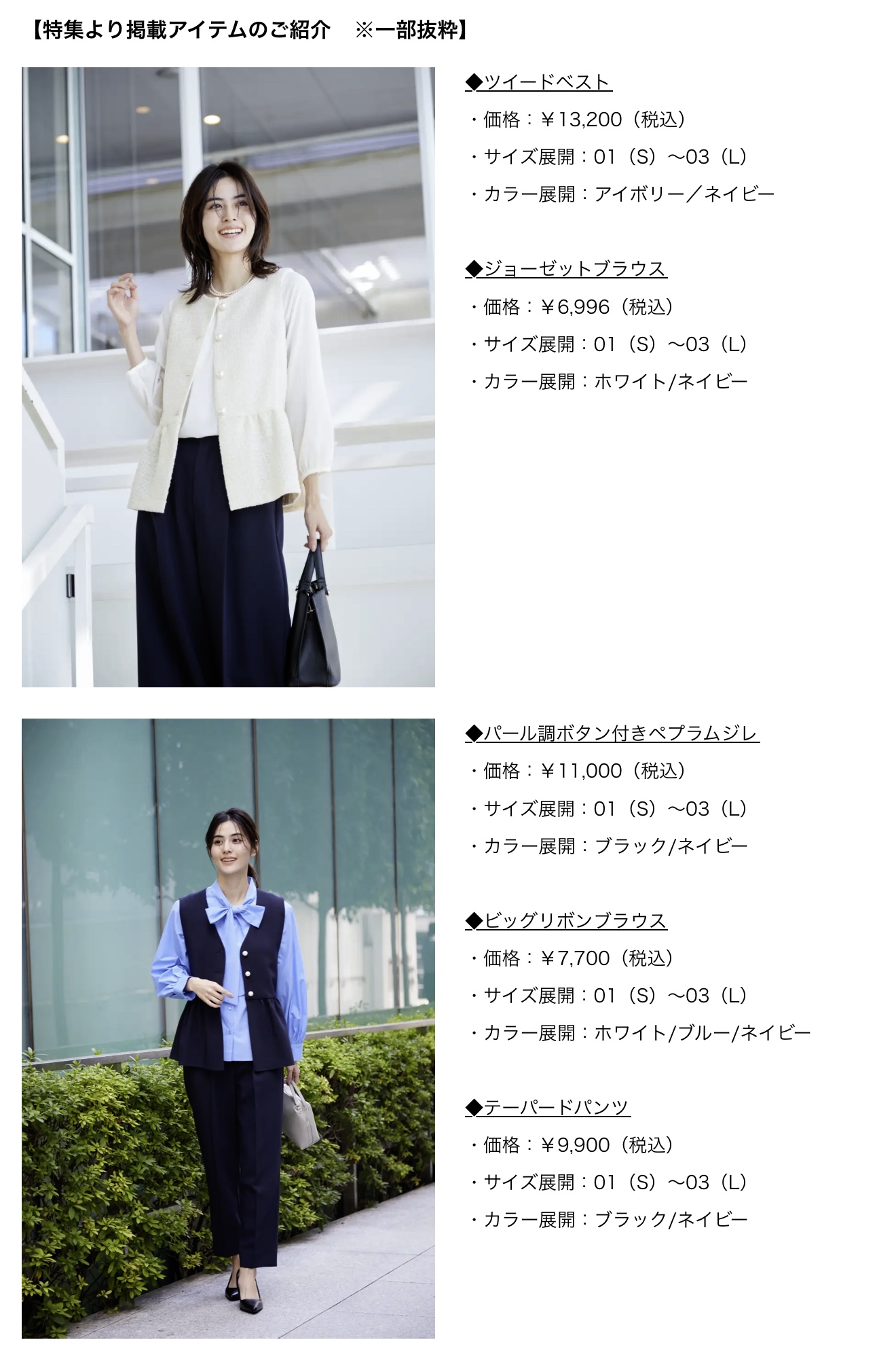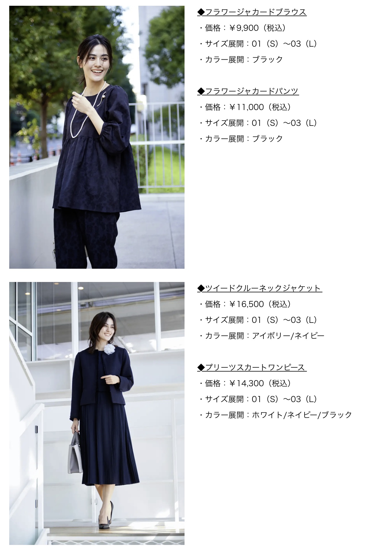 トレンド感のあるツイードベストやフラワージャカード素材のセットアップから、ハレの日らしいジャケットやワンピースまで幅広いアイテムをラインナップ。
