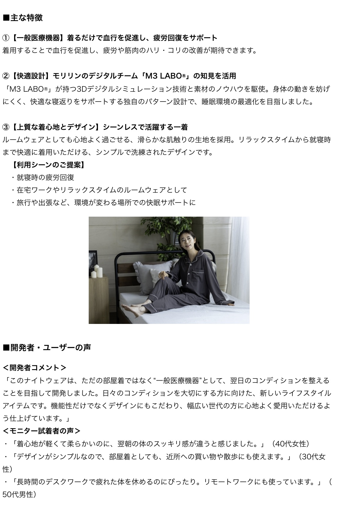 モリリン株式会社 医療機器ナイトウェア市場に新提案 『Recovery Sleep®』から最新3D技術を採用した新商品を9月30日発売 s[血行促進・疲労回復をサポートする医療機器ナイトウェア (2025.10)