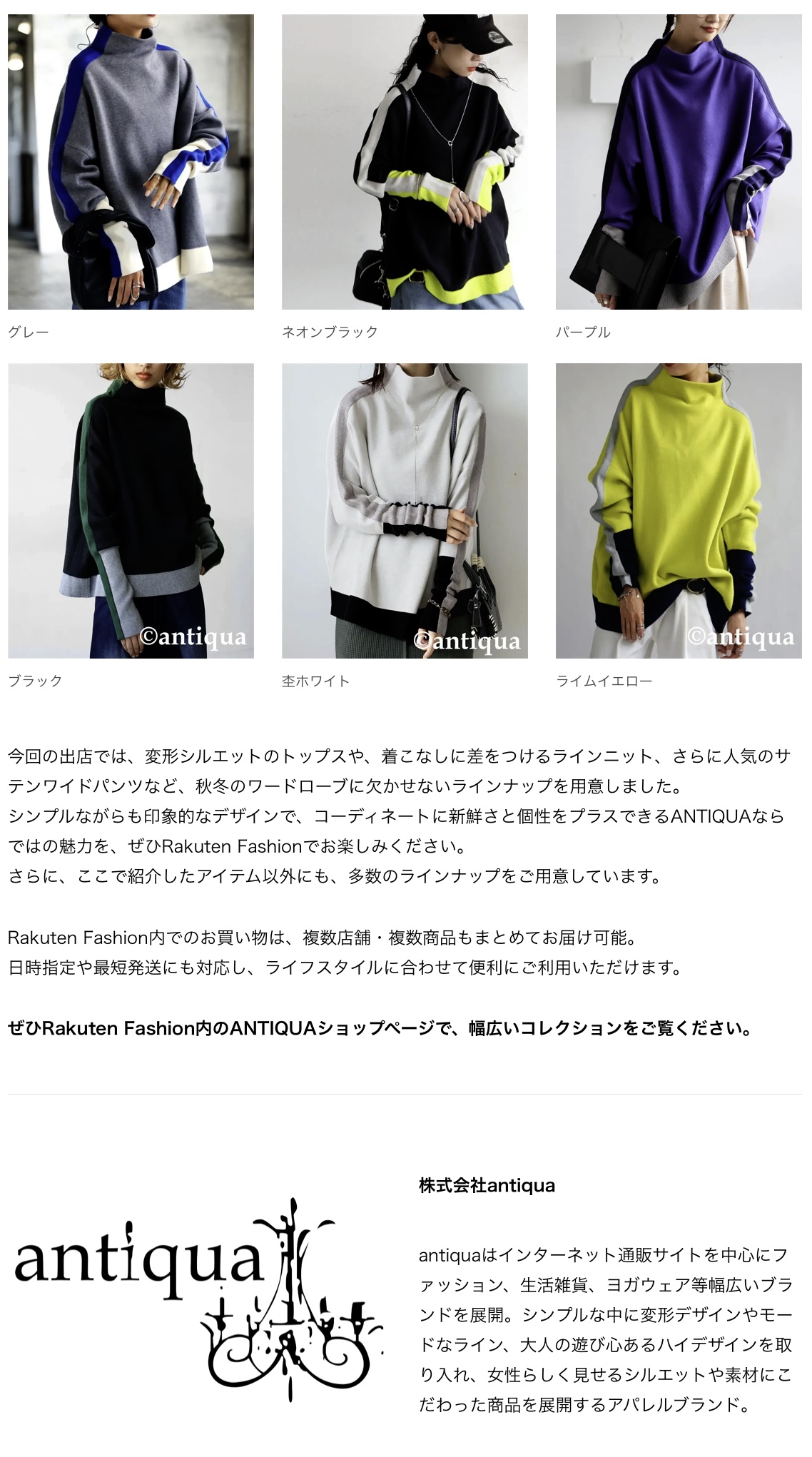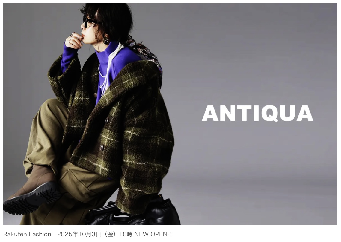 株式会社antiqua 10月3日(金)10時、ついに始まる──【 ANTIQUA 】がRakuten Fashionで新展開!! これまで以上にANTIQUAを近くに。Rakuten Fashion 出店であなたの手に届くファッションを。 (2025.10)