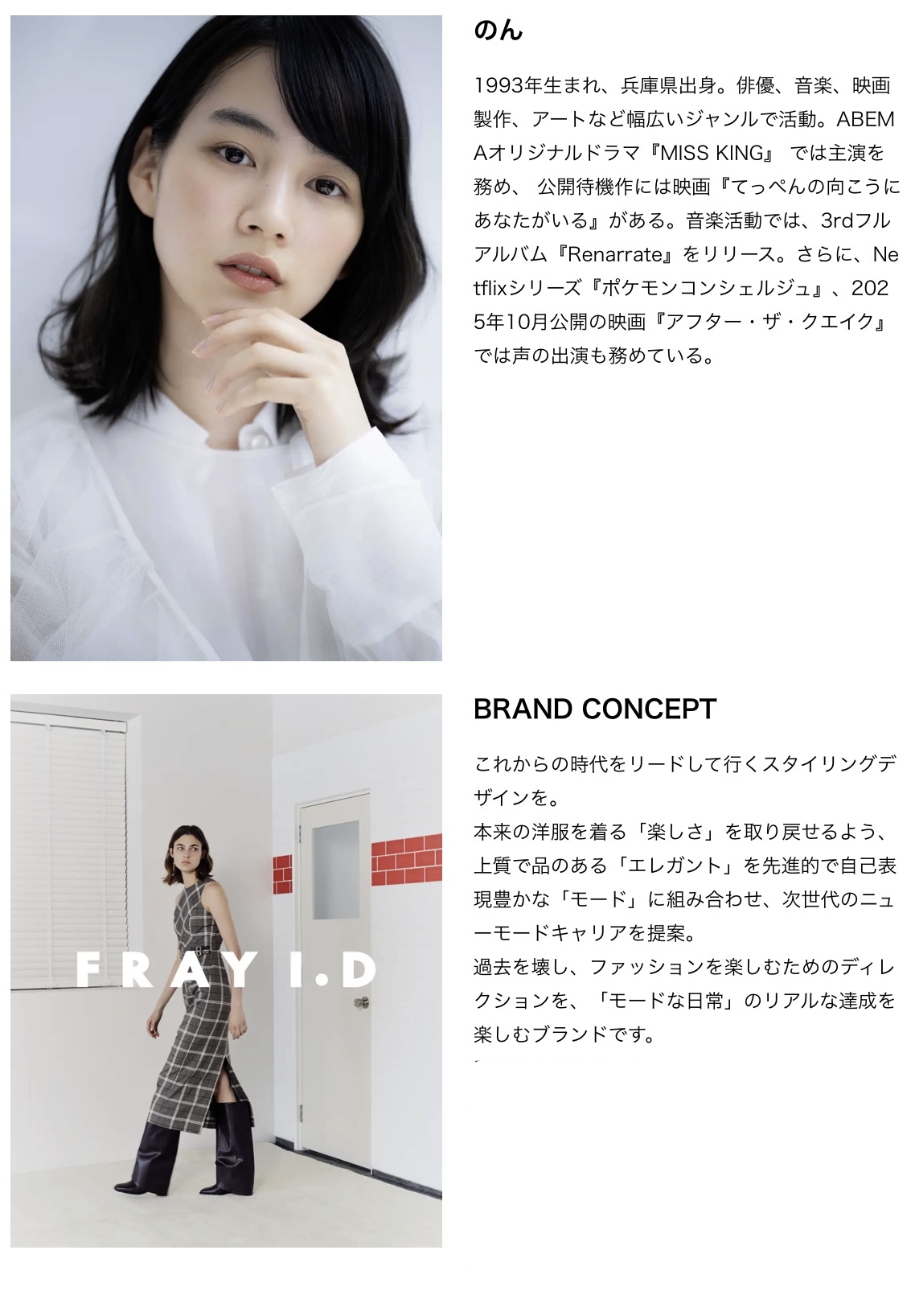 今回、モデルとしてお迎えしたのは、俳優/アーティストの【のん】さん。