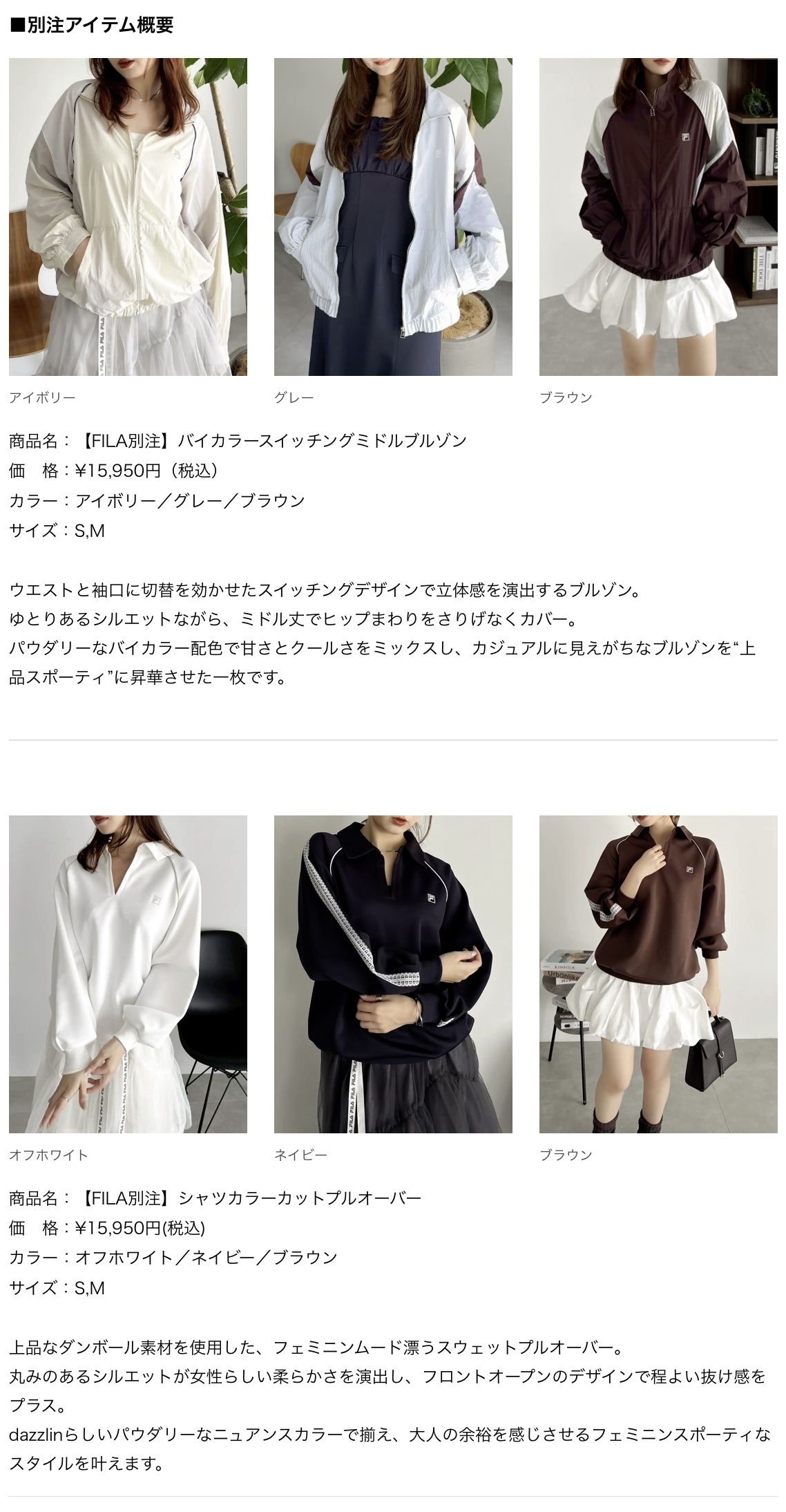 MARK STYLER 「dazzlin(ダズリン)」×「FILA(フィラ)」 秋の別注コレクション登場!フェミニンムード×スポーティエッセンスで叶える“大人秋スタイル”を計4型展開 甘さとスポーティさをMIX。全4型の秋アイテムが10月9日より発売開始 (2025.10)