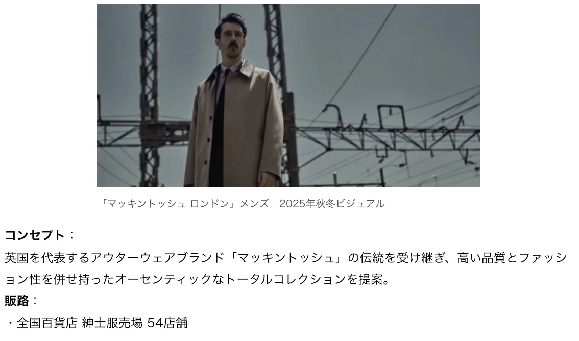 「マッキントッシュ ロンドン」は、英国を代表するアウターウェアブランド「マッキントッシュ」精神を継承しながら、トラディショナルな気品と現代的な感性を融合させ、ビジネスからカジュアルまで幅広いシーンに対応する上質なアイテムを展開しています。