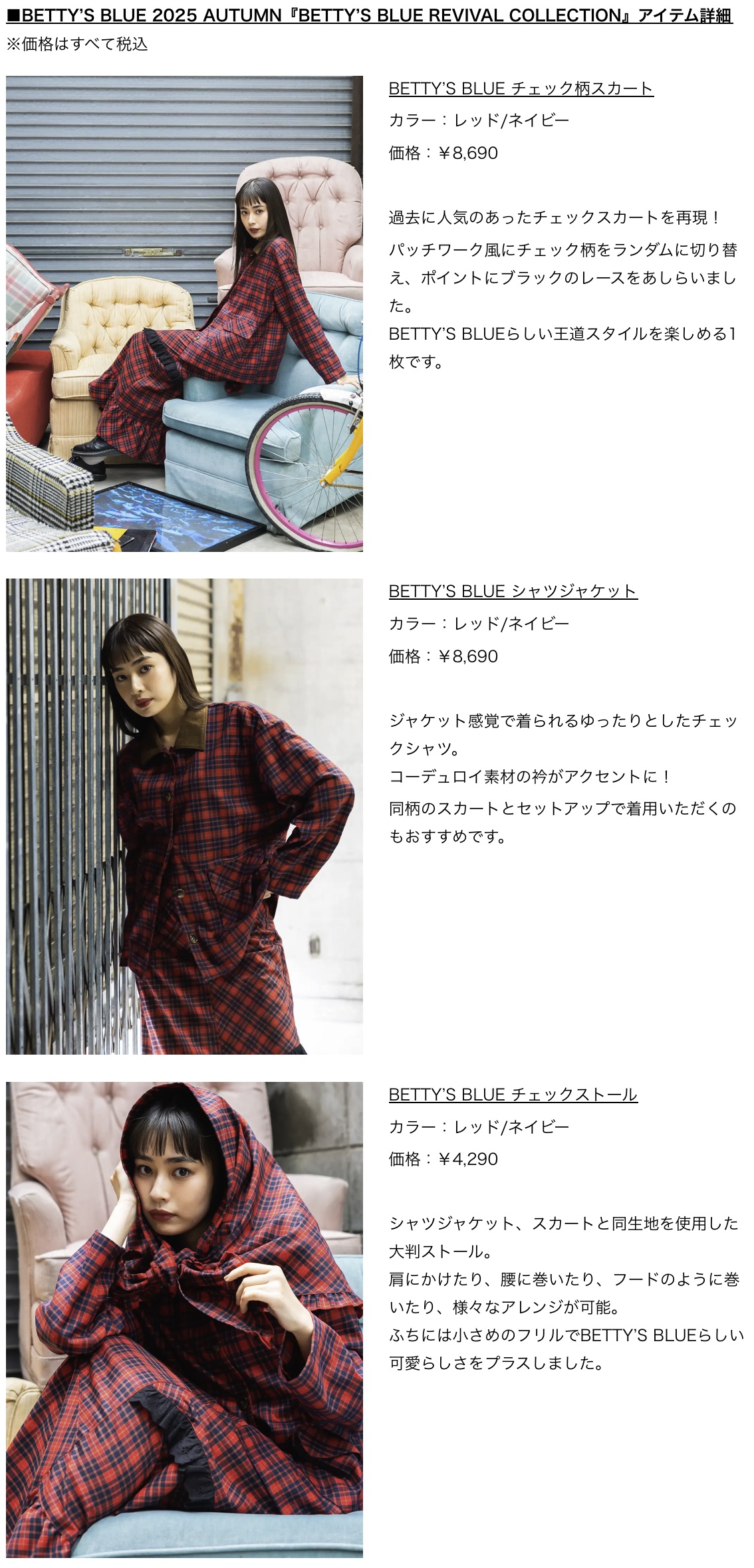 ■BETTY’S BLUE『2025 AUTUMN COLLECTION』販売概要