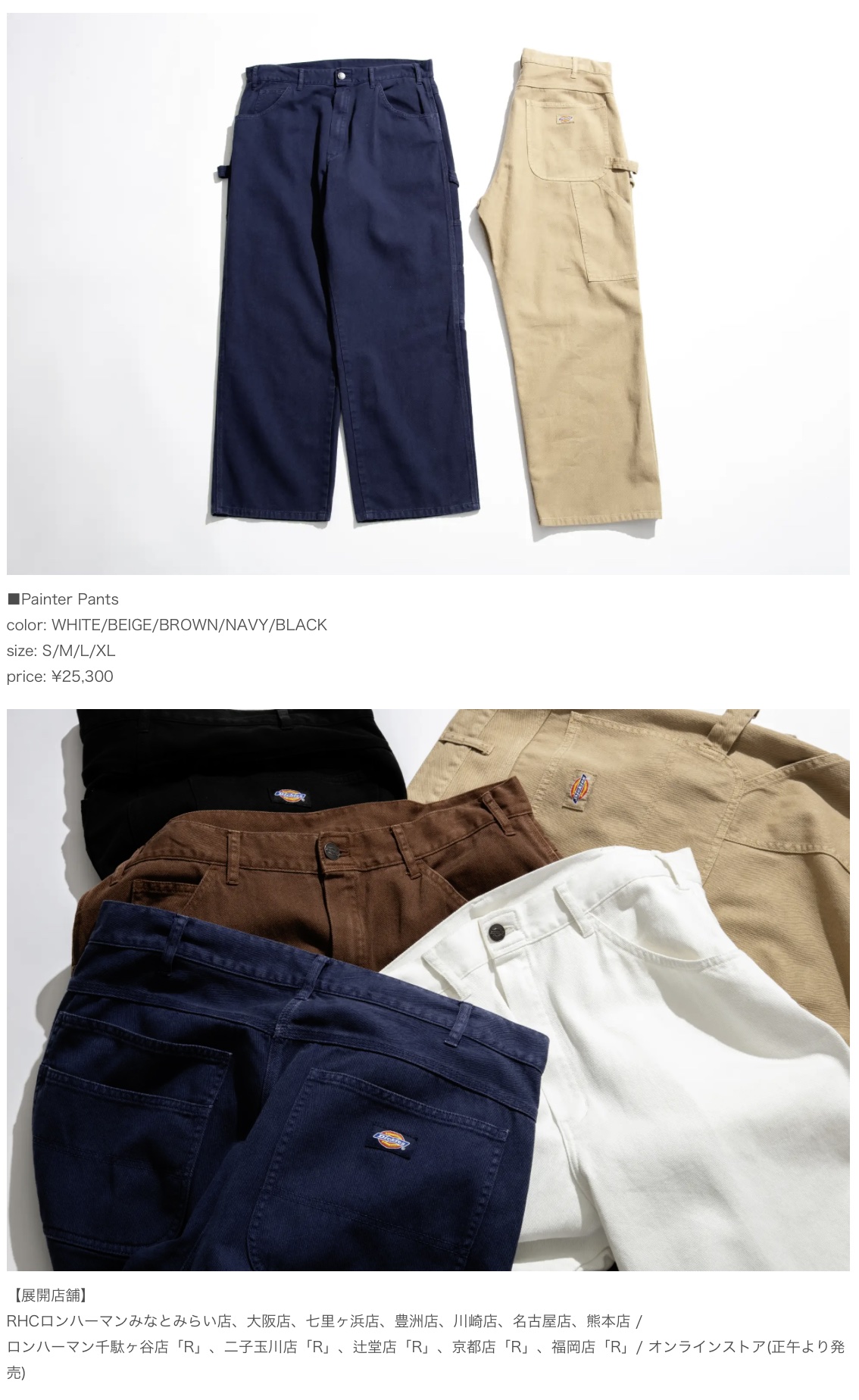 株式会社リトルリーグ 【RHC ロンハーマン】 Dickiesとの別注アイテムより、新たなペインターパンツが10月11日(土)より登場! このたび、10月11 日(土)よりRHC ロンハーマン・ロンハーマン「R」各店舗 / オンラインストアにて Dickies for RHC Painter Pantsを発売いたします。 (2025.10)