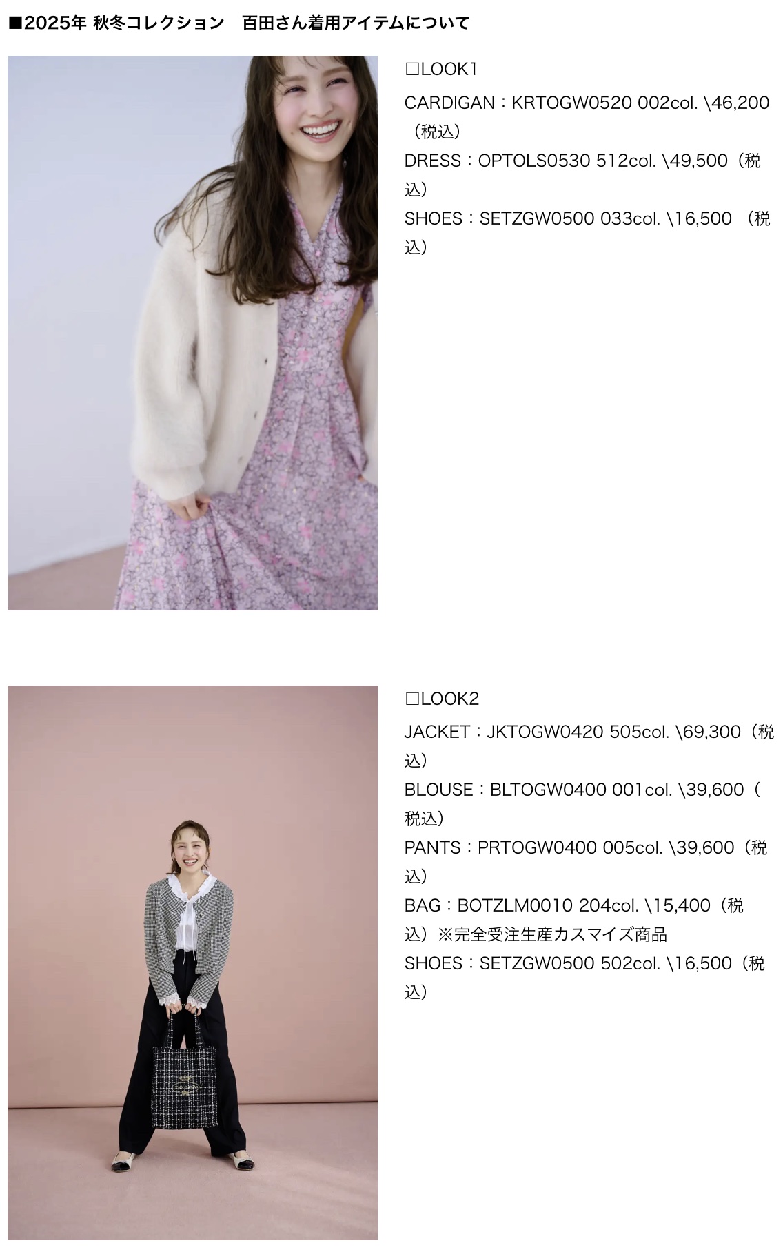株式会社オンワード樫山 『TOCCA』ももいろクローバーZの百田夏菜子さんを2025年秋冬コレクションのイメージモデルに起用 特設ページを公式サイトにて10月10日(金)から公開 (2025.10)