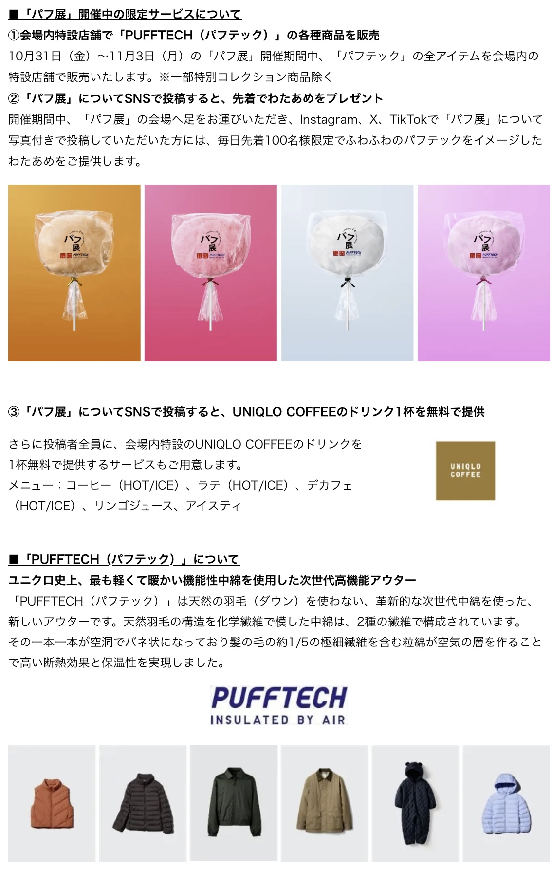 「パフ展」特設サイト:https://www.uniqlo.com/jp/ja/special-feature/cp/pufftech-exhibition