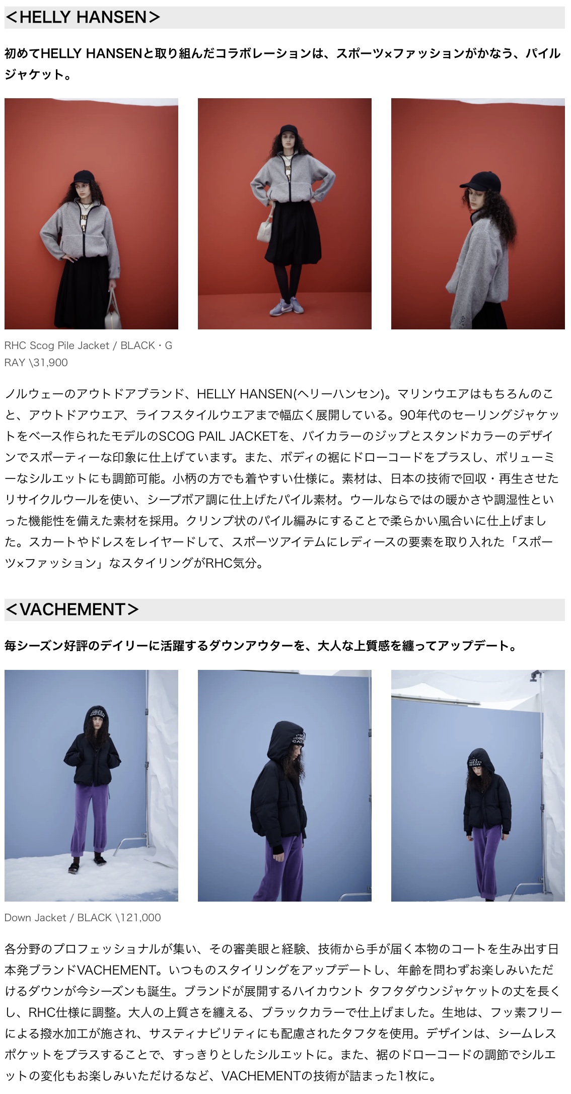 RHCでは、「HELLY HANSEN」「VACHEMENT」「ALPHA INDUSTRIES」の上質で機能的なデイリーアウターコレクションが、10月25日(土)よりRHC ロンハーマン各店およびロンハーマン千駄ヶ谷店「R」・京都店「R」、オンラインストアにて随時発売いたします。