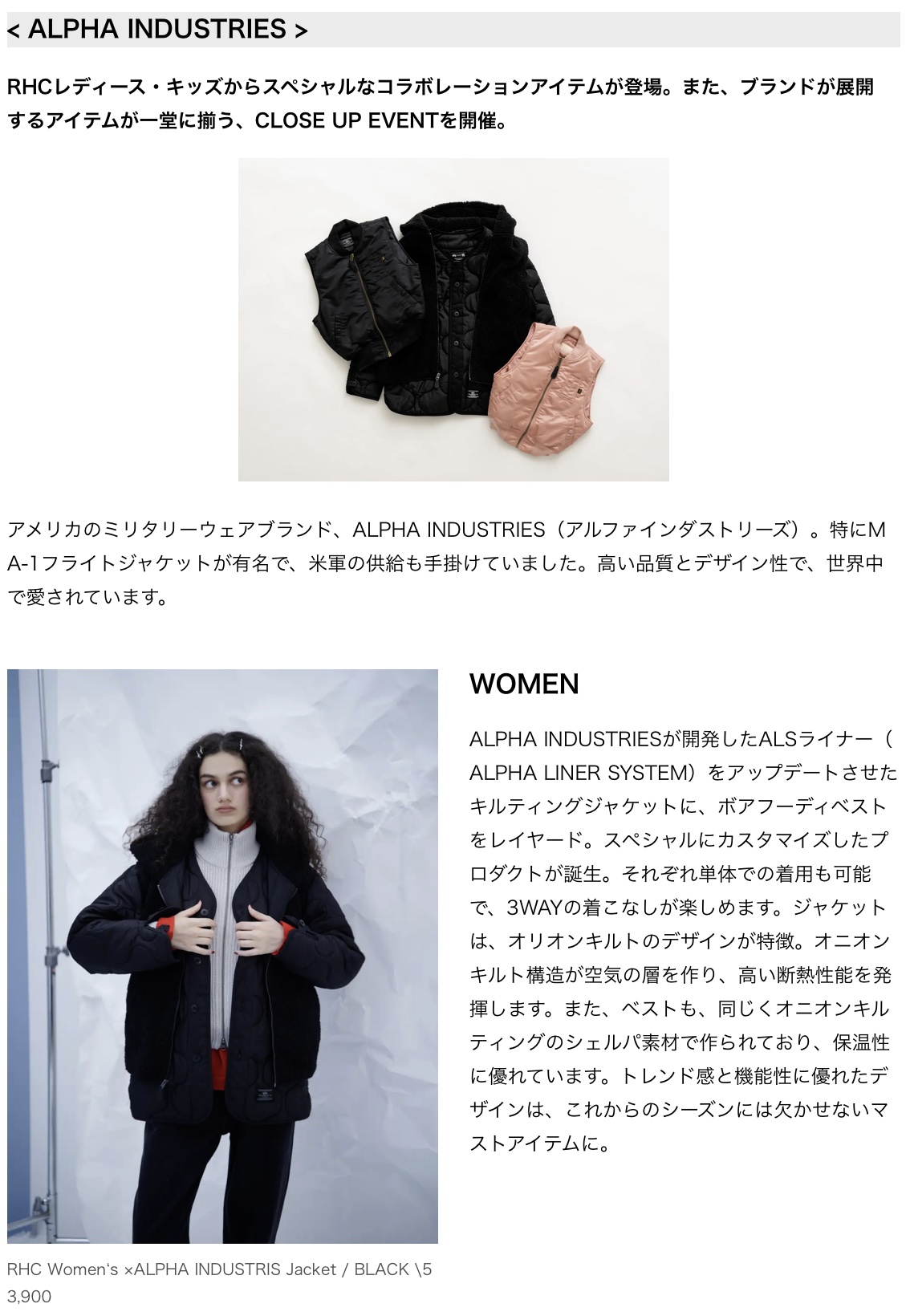 RHC Women‘s ×ALPHA INDUSTRIS Jacket / BLACK \53,900
