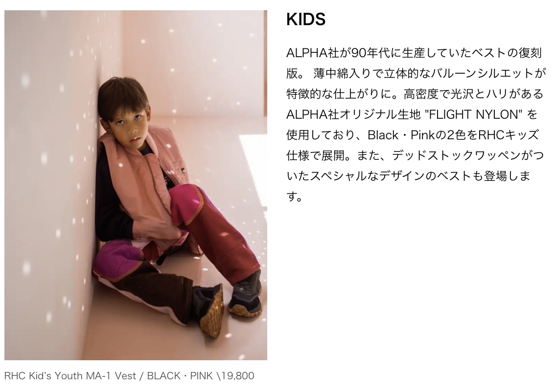 RHC Kid’s Youth MA-1 Vest / BLACK・PINK \19,800
