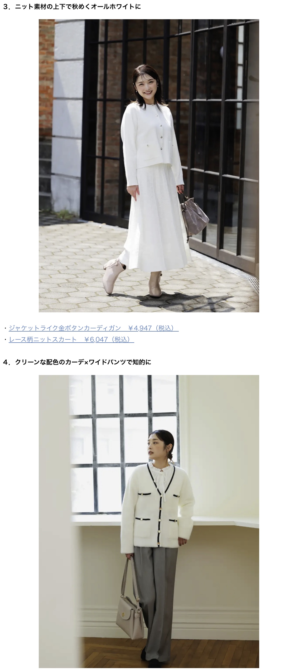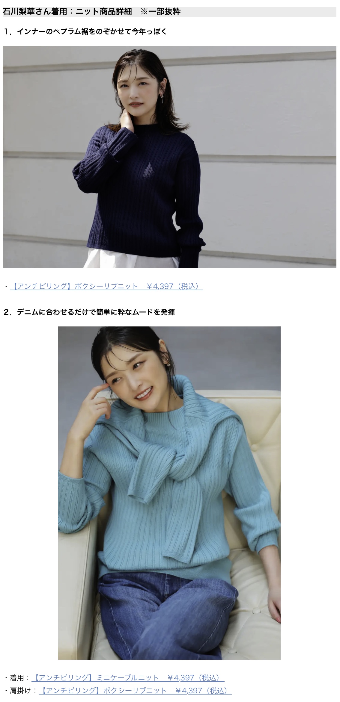 また、10月31日(金)からは石川梨華さんが着こなすニット特集ページ第二弾を公開予定。