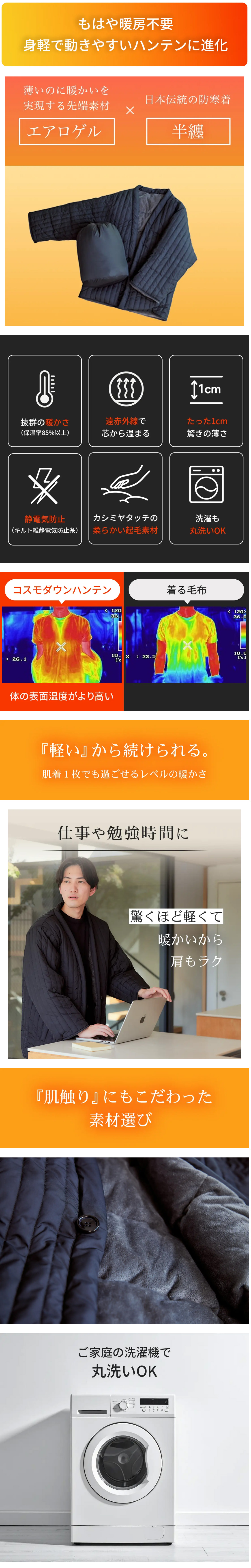 【日本発】真冬でも1枚で暖房不要。薄くて暖かい、着る布団『コスモダウン はんてん』が新登場!