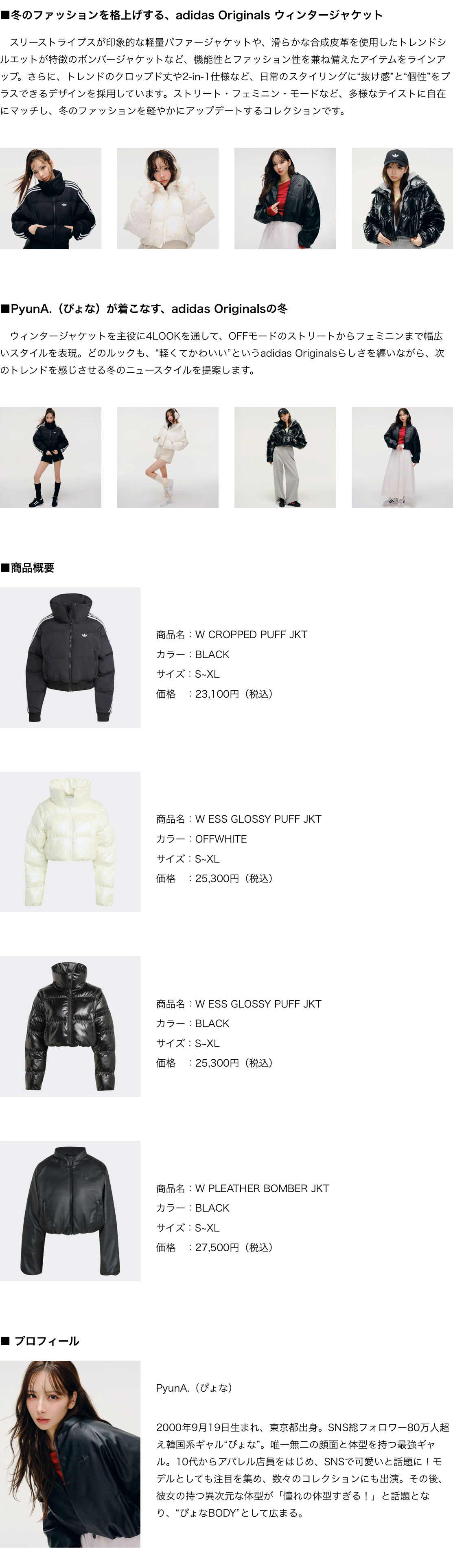 株式会社エービーシー・マート 【ABC-MART】Z世代のカリスマモデル「PyunA.(ぴょな)」起用 トレンドのクロップド丈で個性あふれる4LOOK、adidas Originals ウィンタージャケット新登場 2025年11月6日(木)より全国のABC‐MART及び公式オンラインストアにて発売 (2025.11)
