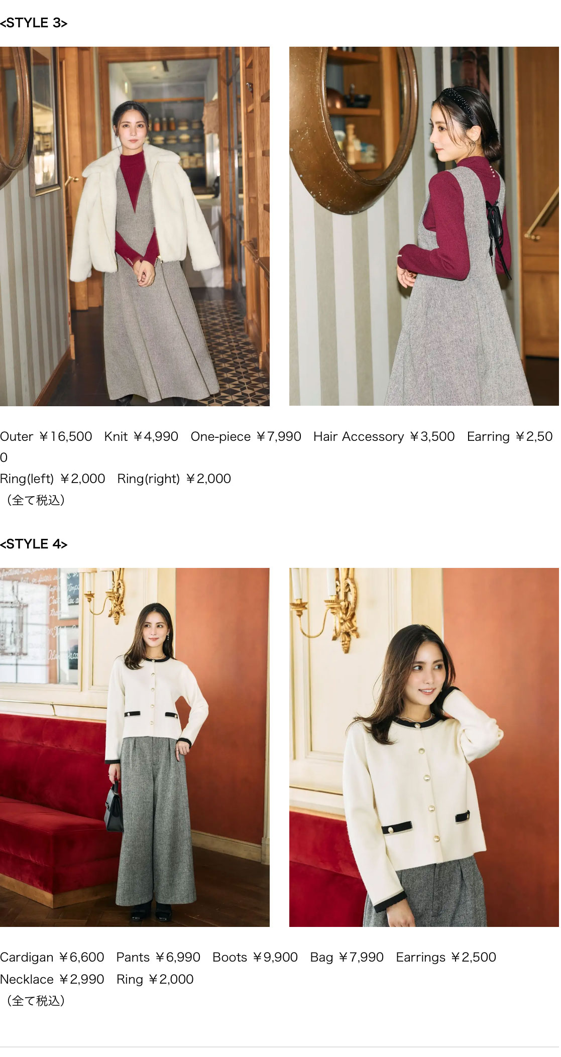 クチュールブローチがおすすめする冬の新作アイテムをラインアップした今回の特集ページでは、エレガントなシルエットのチェスターコートや、肩部分の大きなリボンが特徴のニット、大人可愛いツィード素材のワンピースやパンツなど、フレンチシックな冬の最新コレクションを石川恋さんが素敵に着こなしています。