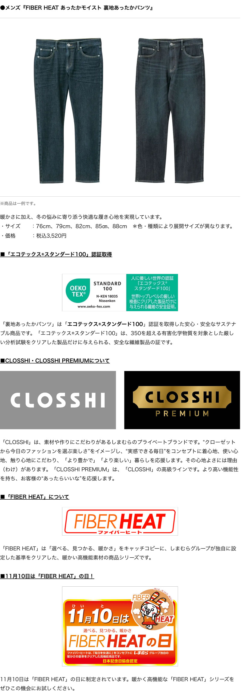 株式会社しまむら しまむら、PB「CLOSSHI PREMIUM」の FIBER HEAT 裏地あったかシリーズが累計販売枚数1,000万本を達成! (2025.11)