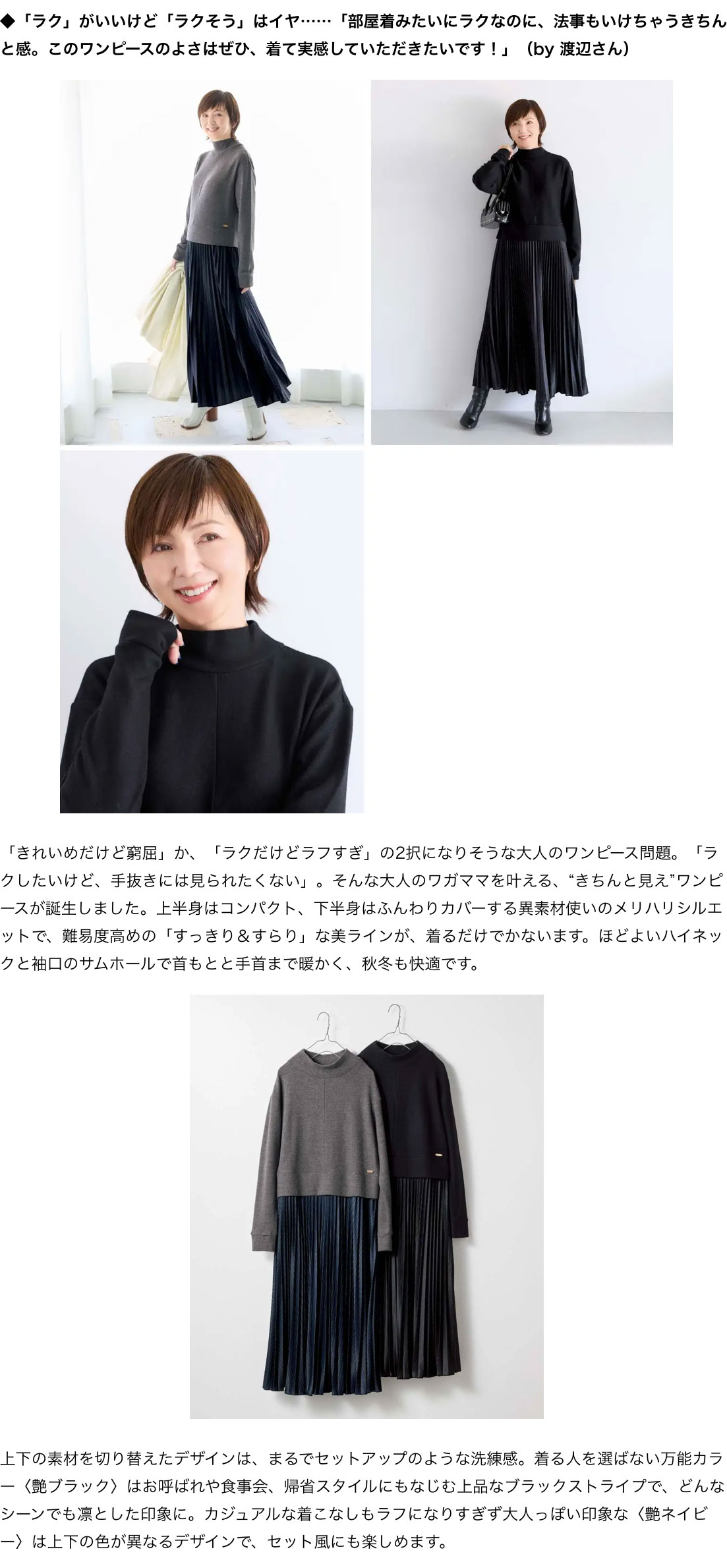 【NEW】大人の女史会×frauglatt 一枚で着るだけ美バランス 異素材ドッキングプリーツワンピース