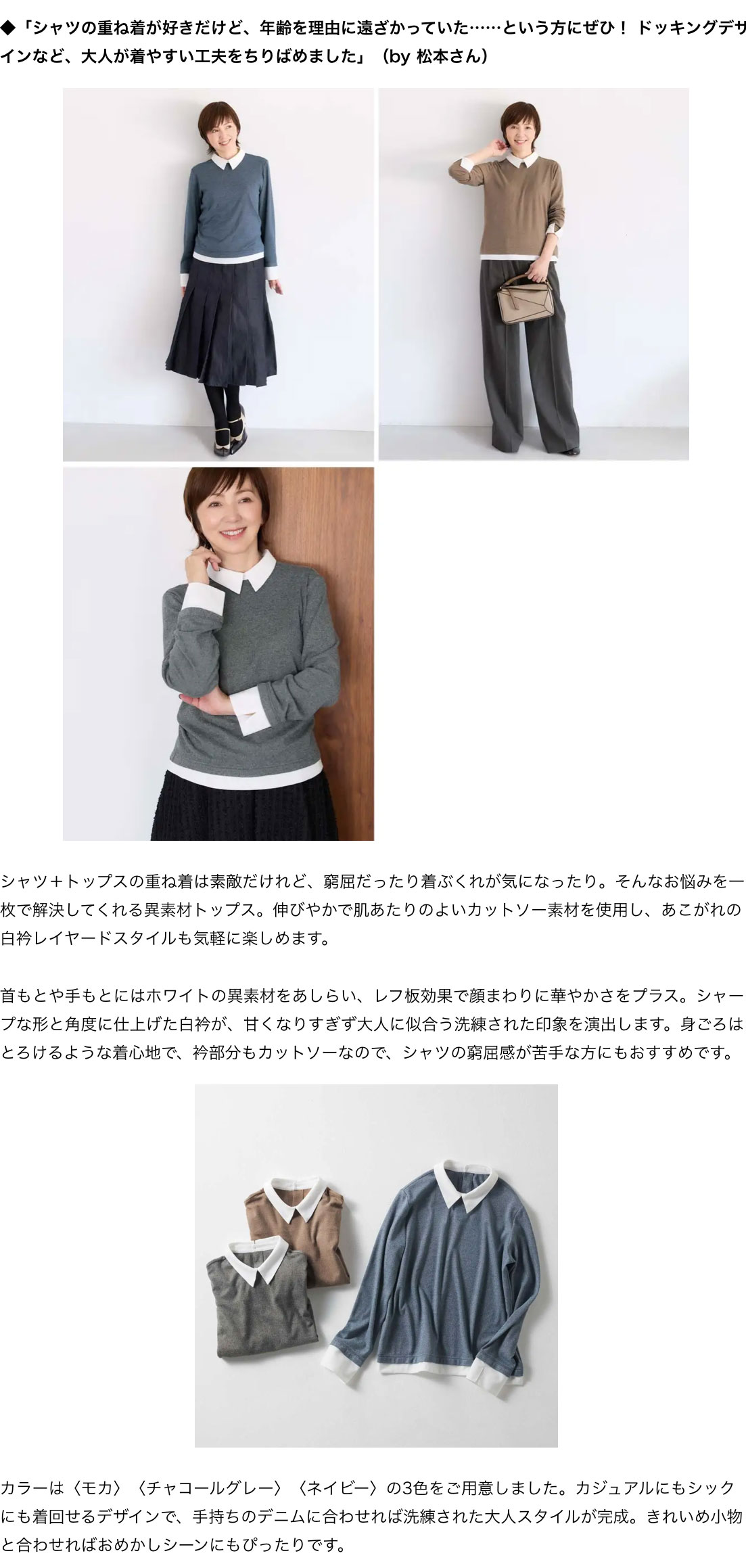 株式会社フェリシモ 渡辺満里奈さん・松本孝美さんと考えた「大人の私にちょうどいい服」ーフェリシモ×『大人の女史会』 コラボ第三弾登場! 「あきらめていたおしゃれが楽しくなった!」との評判を受け、2024年秋から続くシリーズの第三弾。 (2025.11)