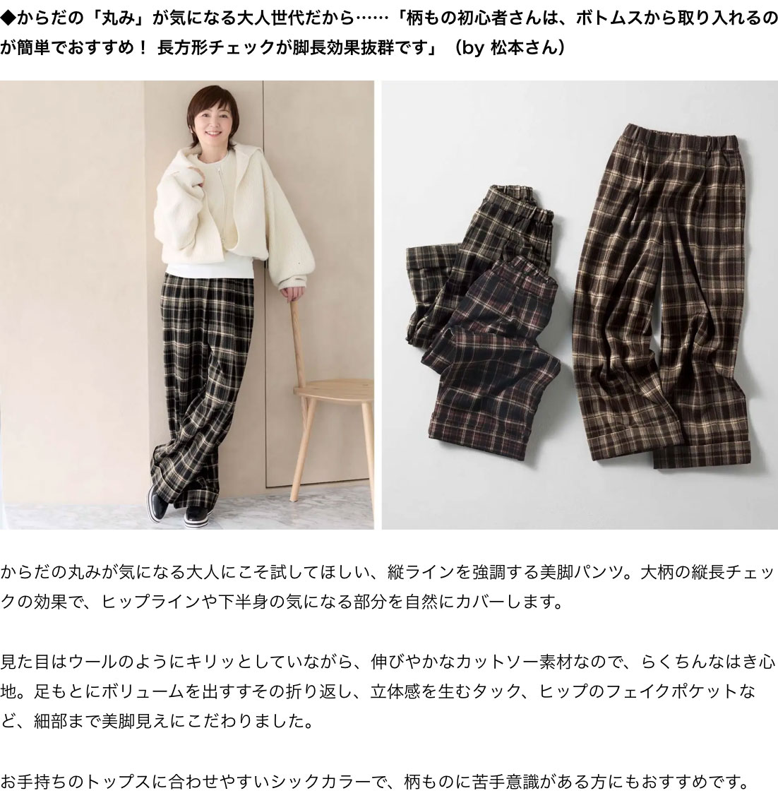 【NEW】大人の女史会×frauglatt すそダブル風仕上げで好バランス 伸びやかな美脚チェックパンツの会