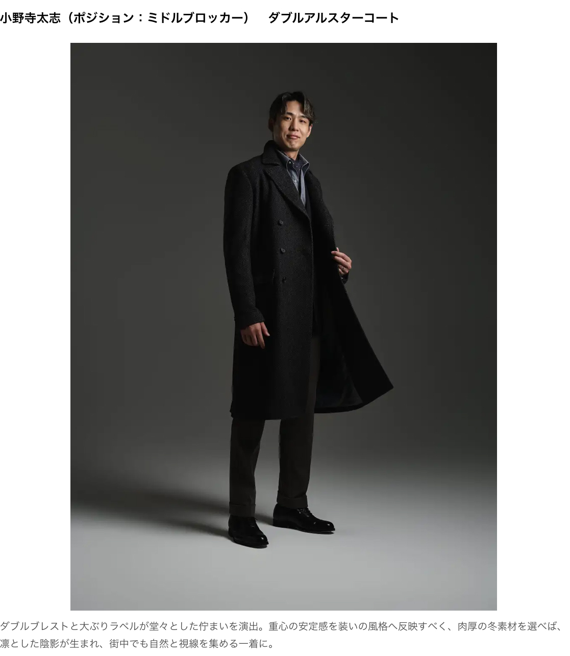 アスリートが楽しむオーダーコートスタイル特集ページを公開中。