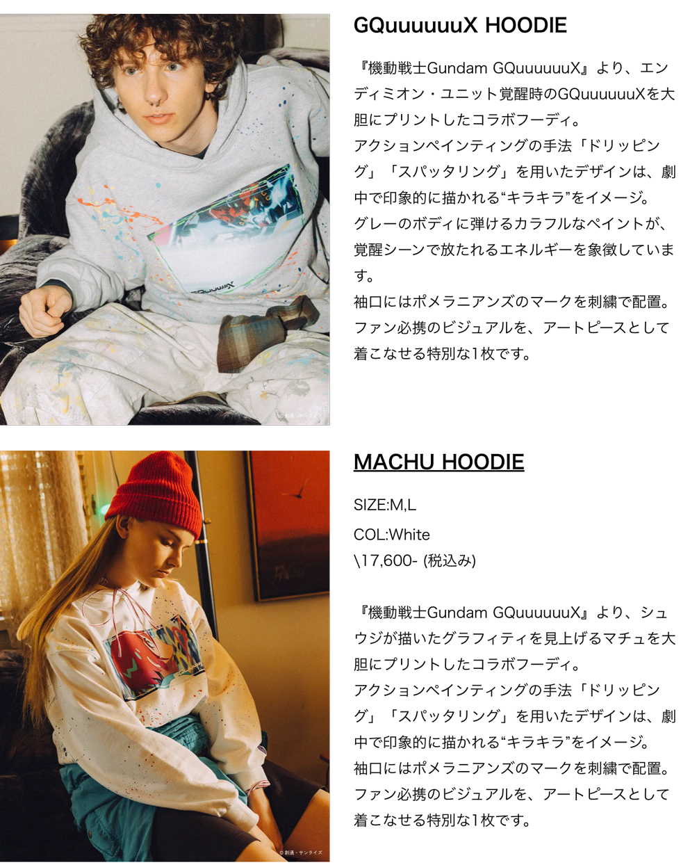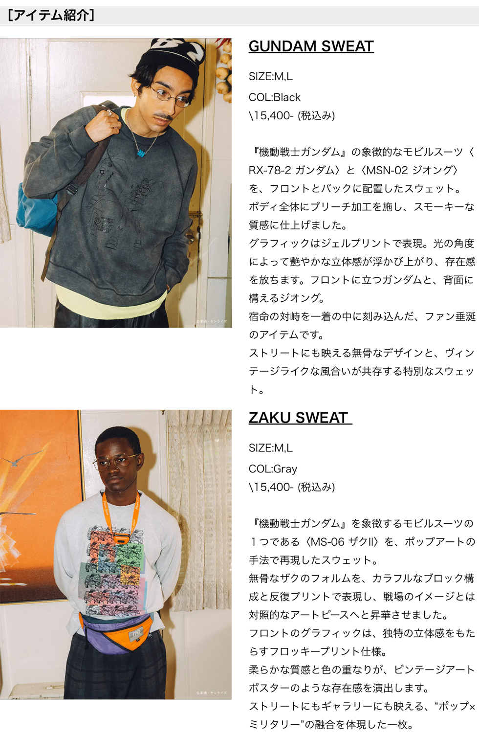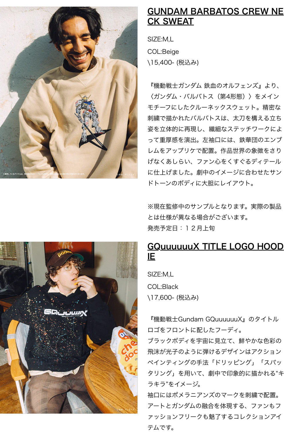 『機動戦士ガンダム』、今年で放送から30周年の『新機動戦記ガンダムW』、10周年の『機動戦士ガンダム 鉄血のオルフェンズ』、シリーズ最新作『機動戦士Gundam GQuuuuuuX (ジークアクス)』。それぞれの魂をスウェットとパーカーに刻み込んだスペシャルなアイテムです。