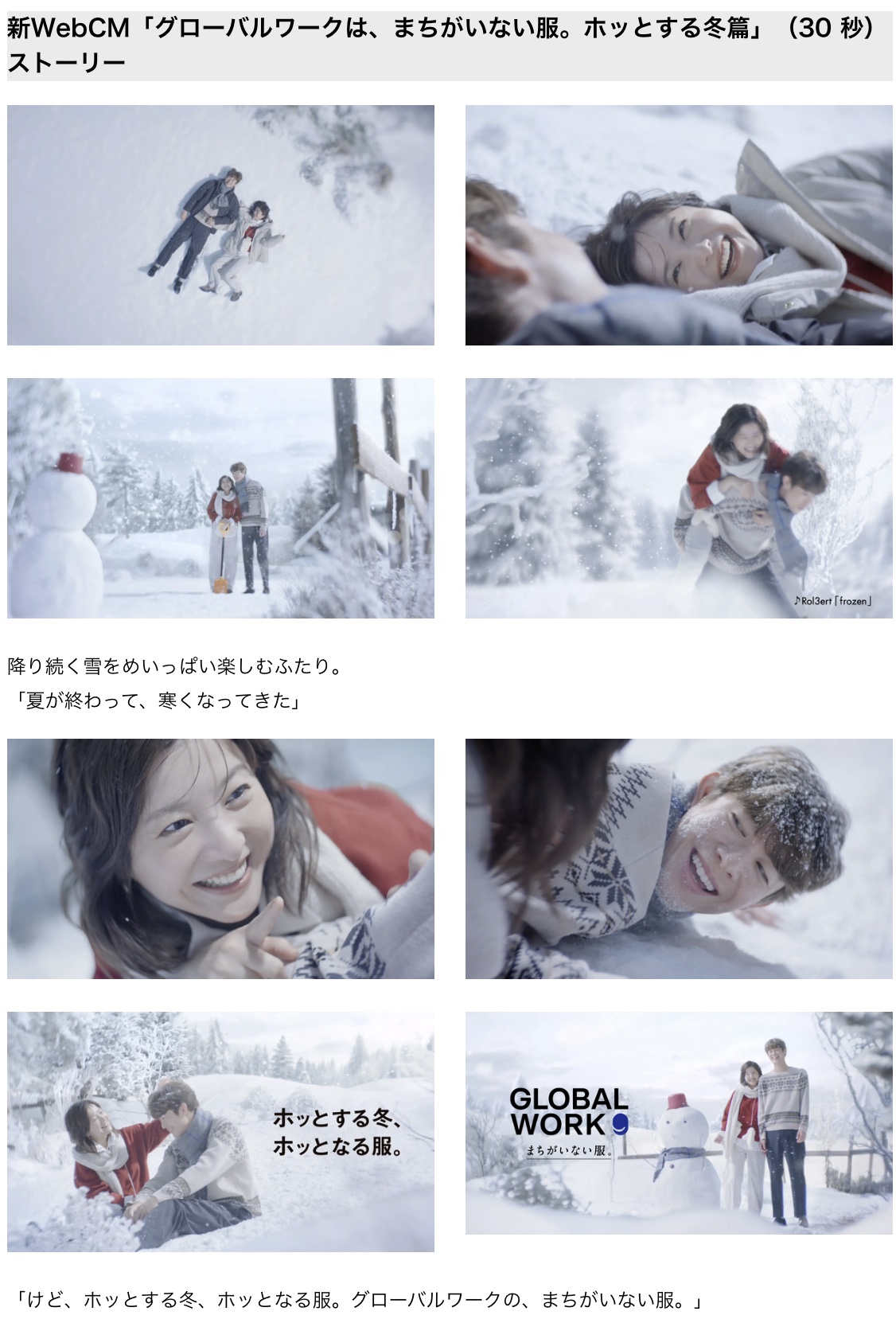 「グローバルワークは、まちがいない服。ホッとする冬篇」(30秒)URL: