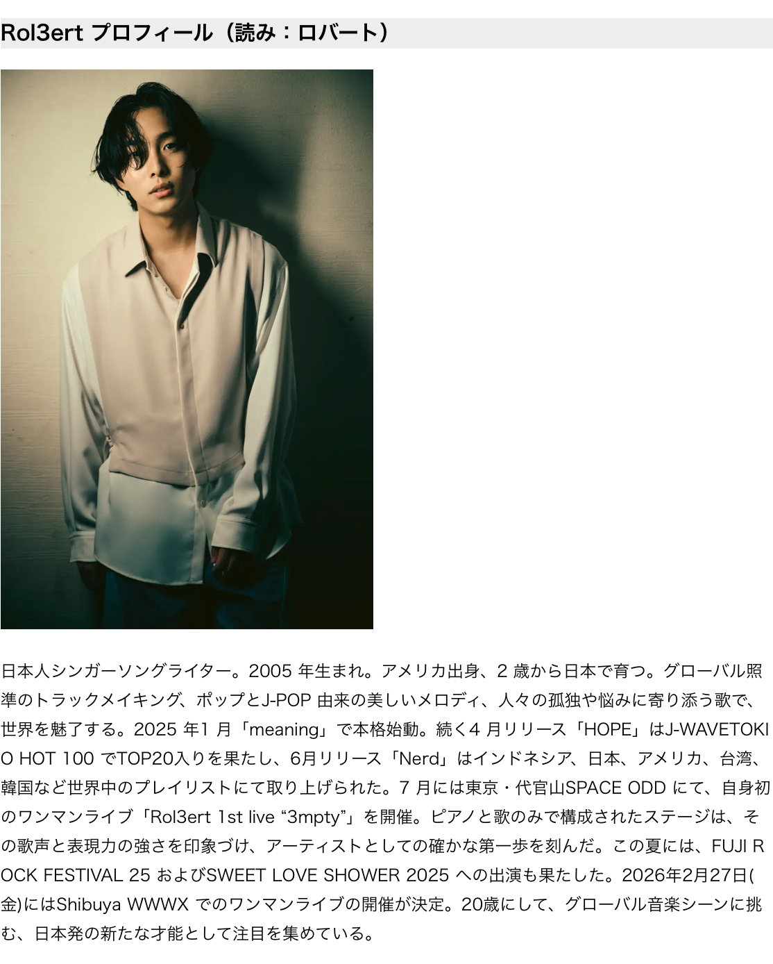 若くして、⽇本国内だけでなく世界で次世代のアーティストとして注⽬されているRol3ert(読み:ロバート)さんにWebCM楽曲「frozen」を書き下ろしていただきました。