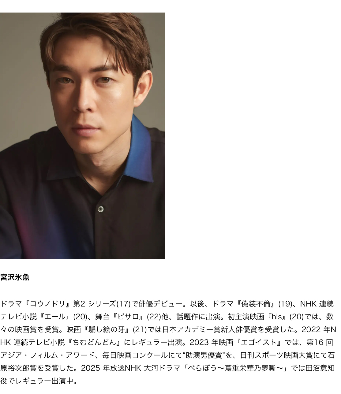 宮沢氷⿂さんWEB コンテンツURL:https://www.globalwork.jp/men/2025winter/