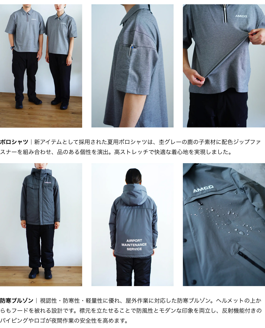 株式会社ユナイテッドアローズ(代表取締役 社長執行役員 CEO:松崎 善則、本社所在地:東京都渋谷区)が展開する法人向けユニフォームレーベル「ID UNITED ARROWS」は、エアポートメンテナンスサービス株式会社(代表取締役社長:本城 浩尚、本社所在地:千葉県成田市、以下AMCO)の新ユニフォームをプロデュースしました。 2025年に創立40周年を迎えるAMCOは、社員の働きやすさと企業の進化を見据え、ユニフォームの刷新を決定。現場スタッフの声をもとに、機能性とデザイン性を兼ね備えた全7アイテムを開発しました。