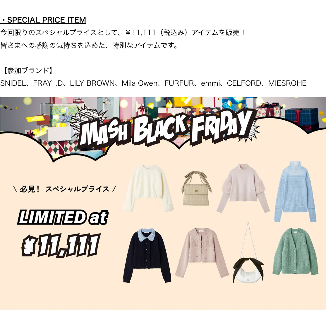 お得にお買い物できるだけでなく、この時期ならではのワクワク感を最大限に、一年の感謝をお届けする「MASH BLACK FRIDAY」がホリデーシーズンを華やかに彩ります。