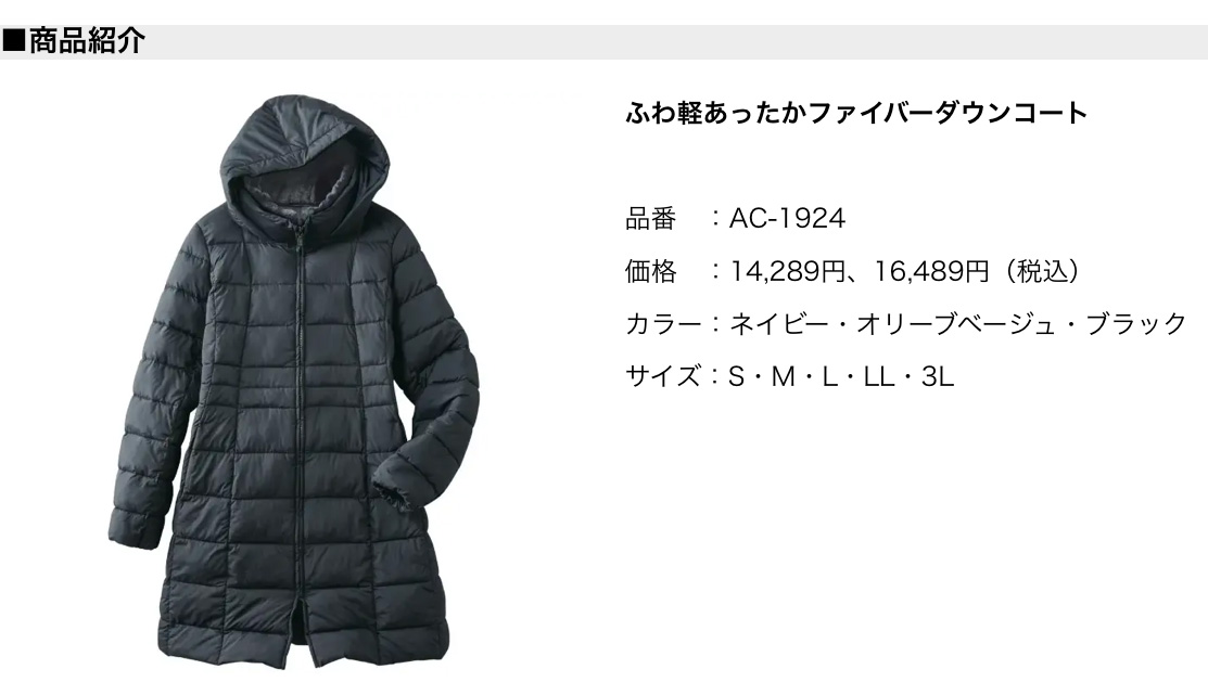 株式会社セシール セシール最軽量のロングダウンを実現!ふわっと軽い「ETHERMALOFT®」中わたを採用した「ふわ軽あったかファイバーダウンコート」がセシールから新発売。 (2025.11)