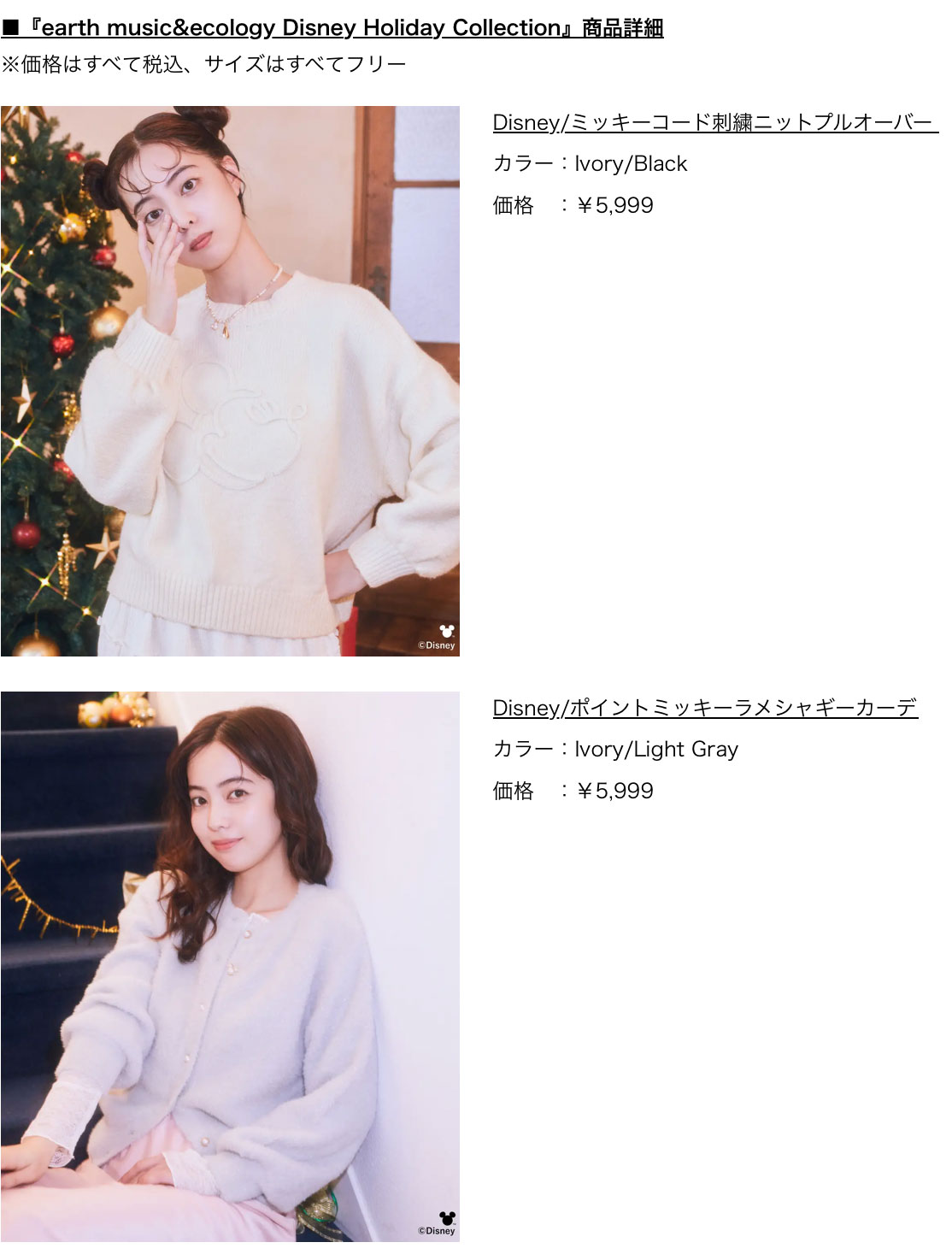 ■『earth music&ecology Disney Holiday Collection』販売概要