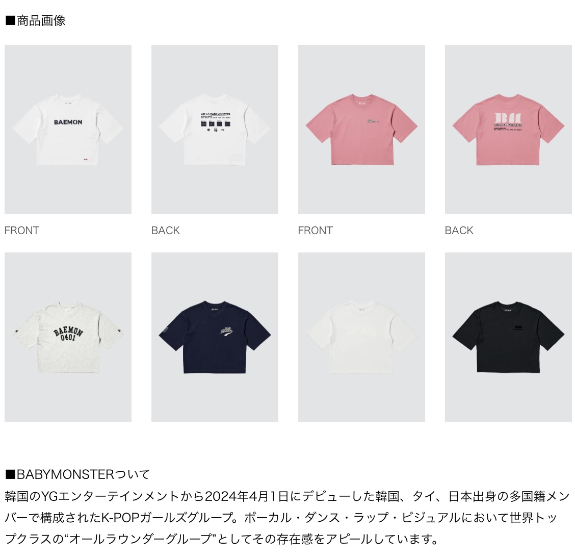 株式会社ユニクロ グローバルK-POPガールズグループBABYMONSTERとの初コラボ!代表曲「BATTER UP」をコンセプトにしたUTが登場 2026年2月下旬より発売決定! (2025.12)